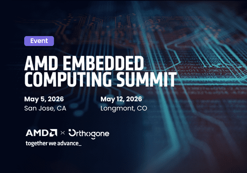 Orthogone Technologies will participate in AMD Embedded Computing Summit 2026 in San Jose and Longmont. Meet our team to explore the challenges and opportunities shaping next-generation embedded and edge systems.